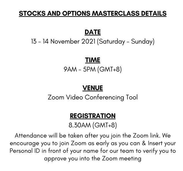 Attendance will be taken after you join the Zoom link. We encourage you to join Zoom as early as you can & Insert your Personal ID in front of your name for our team to verify you to approve you into the Zoom meeting