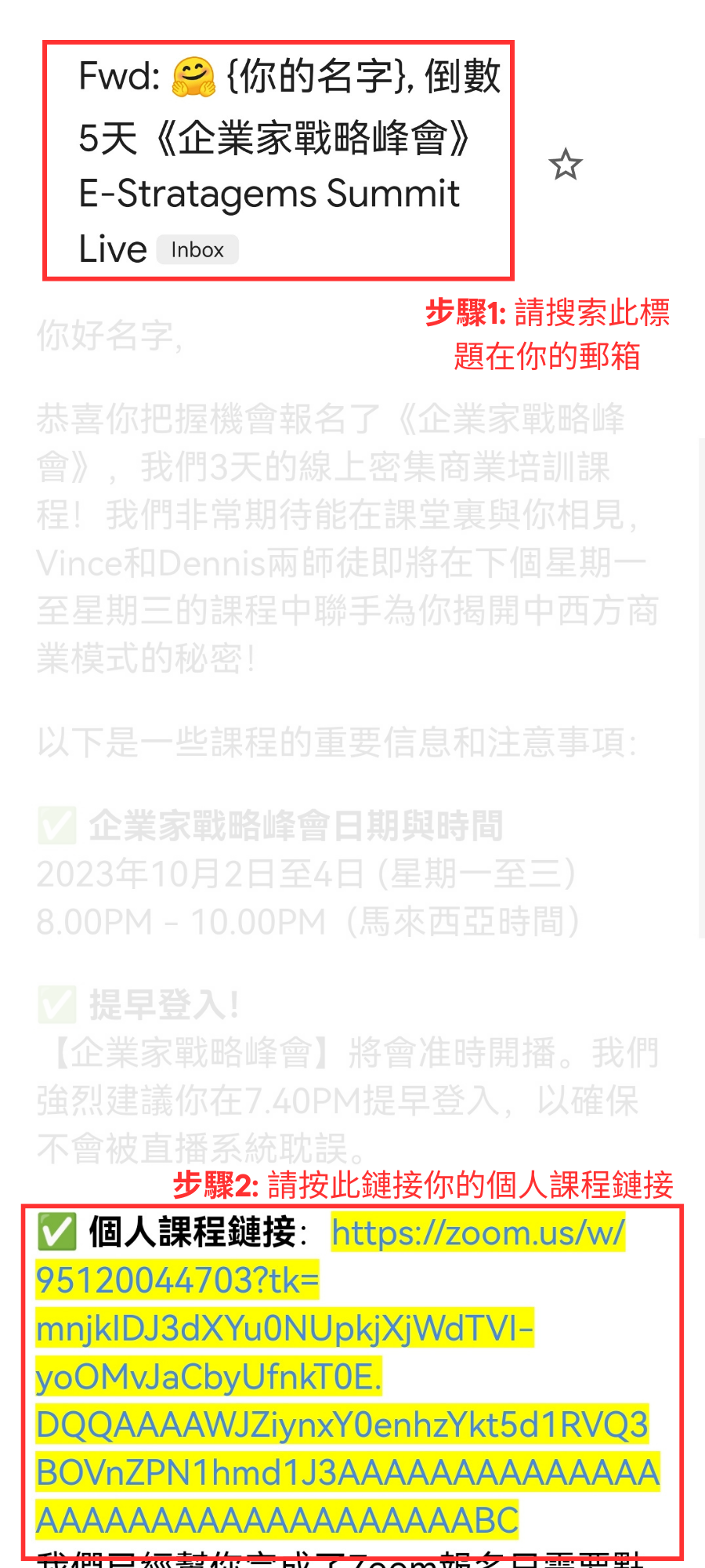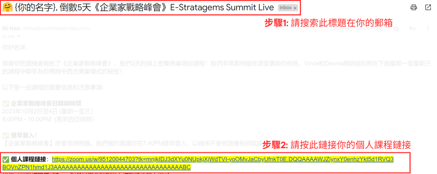 課程鏈接以通過email放給你了- 以下圖為Email標題。你也可以點擊以下紅色小按鈕進入課程鏈接